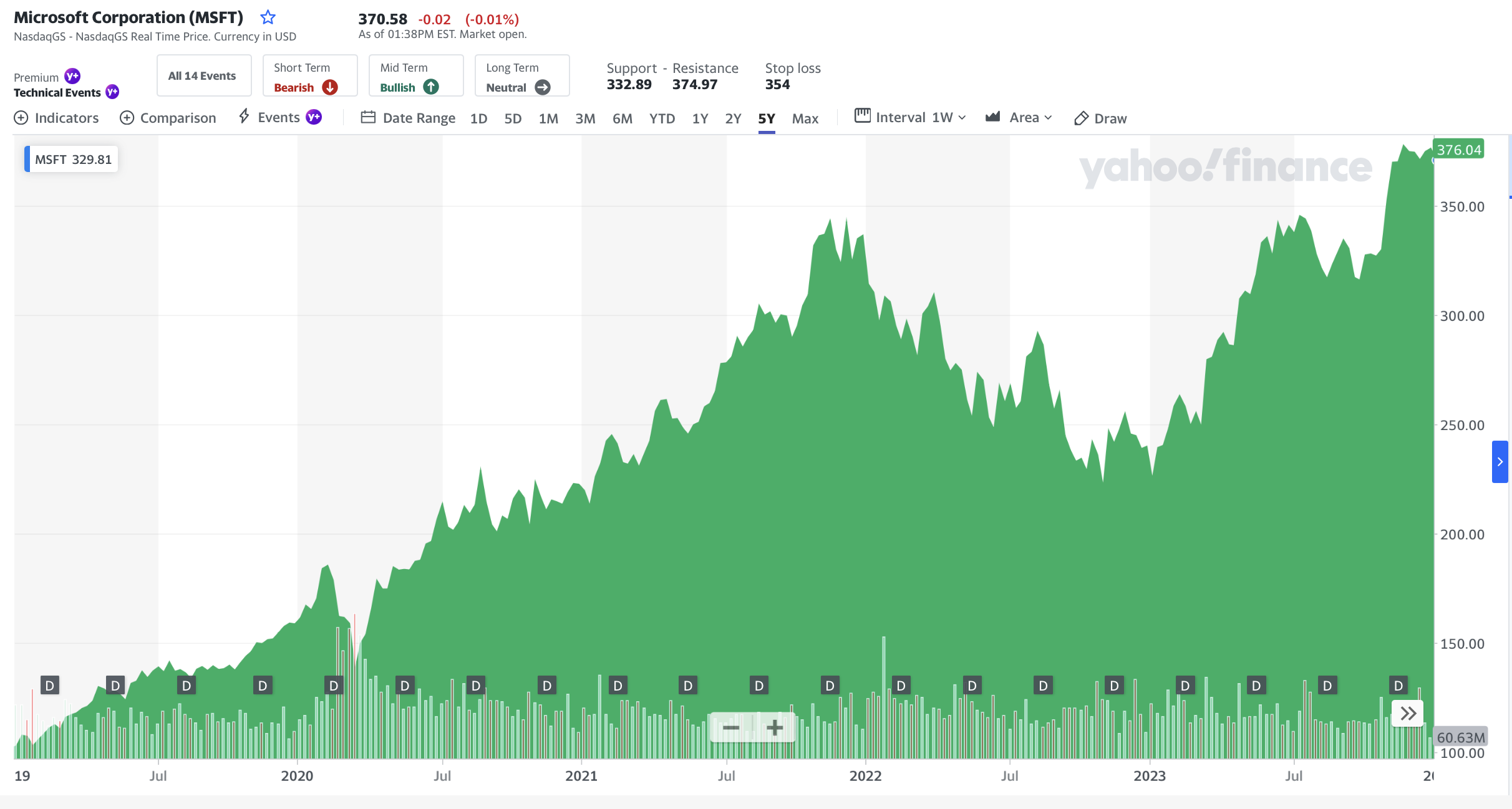 Microsoft Corporation (MSFT) 5 Year Chart